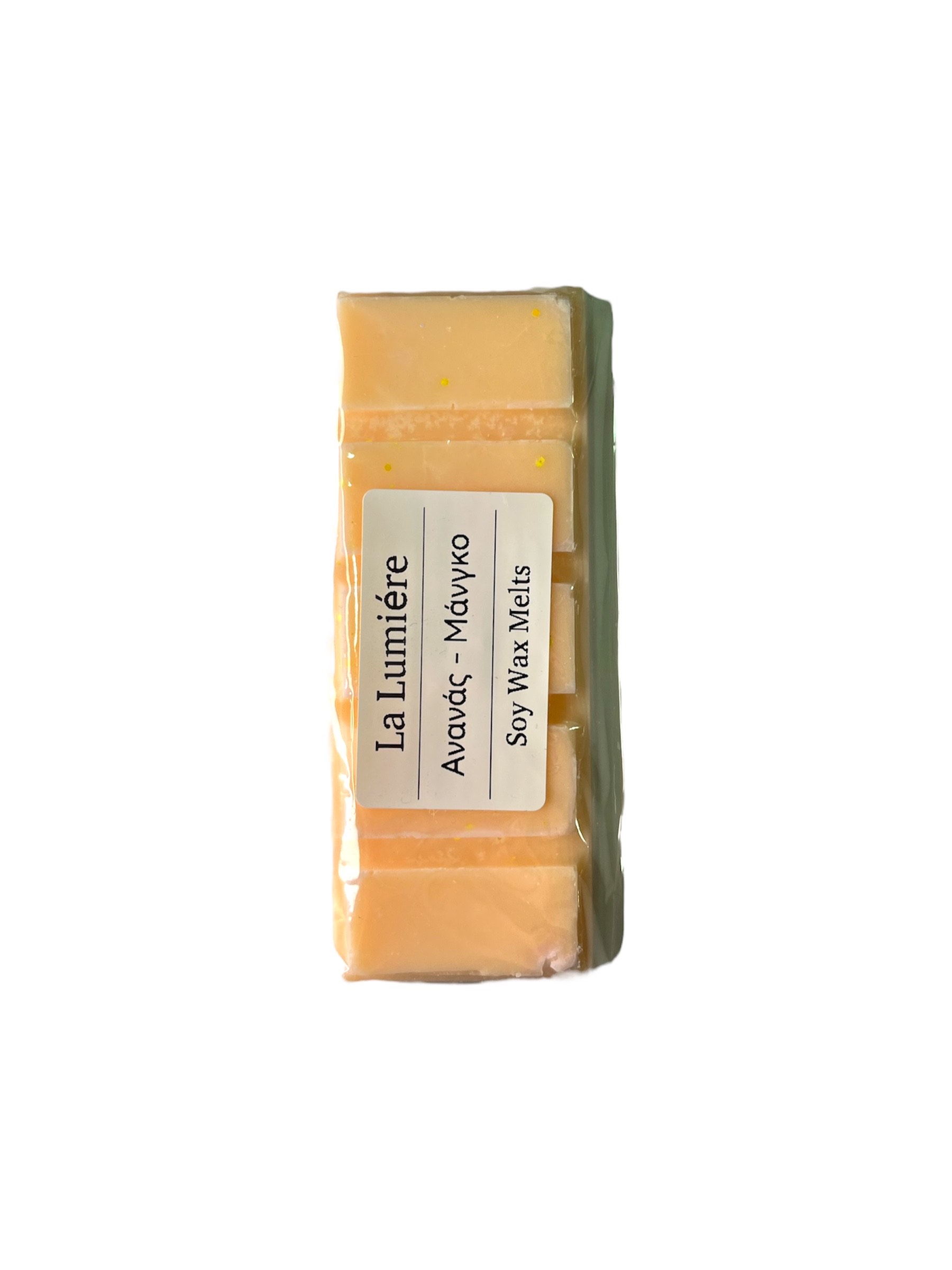 Φέρε την τροπική φρεσκάδα στο σπίτι σου με το snap bar wax melt Ανανάς & Μάνγκο. Χειροποίητο από 100% φυτικό κερί σόγιας, αυτό το κερί χαρίζει ένα γλυκό, φρουτώδες και δροσερό άρωμα ανανά και μάνγκο που γεμίζει τον χώρο με ζωντάνια και χαρά.