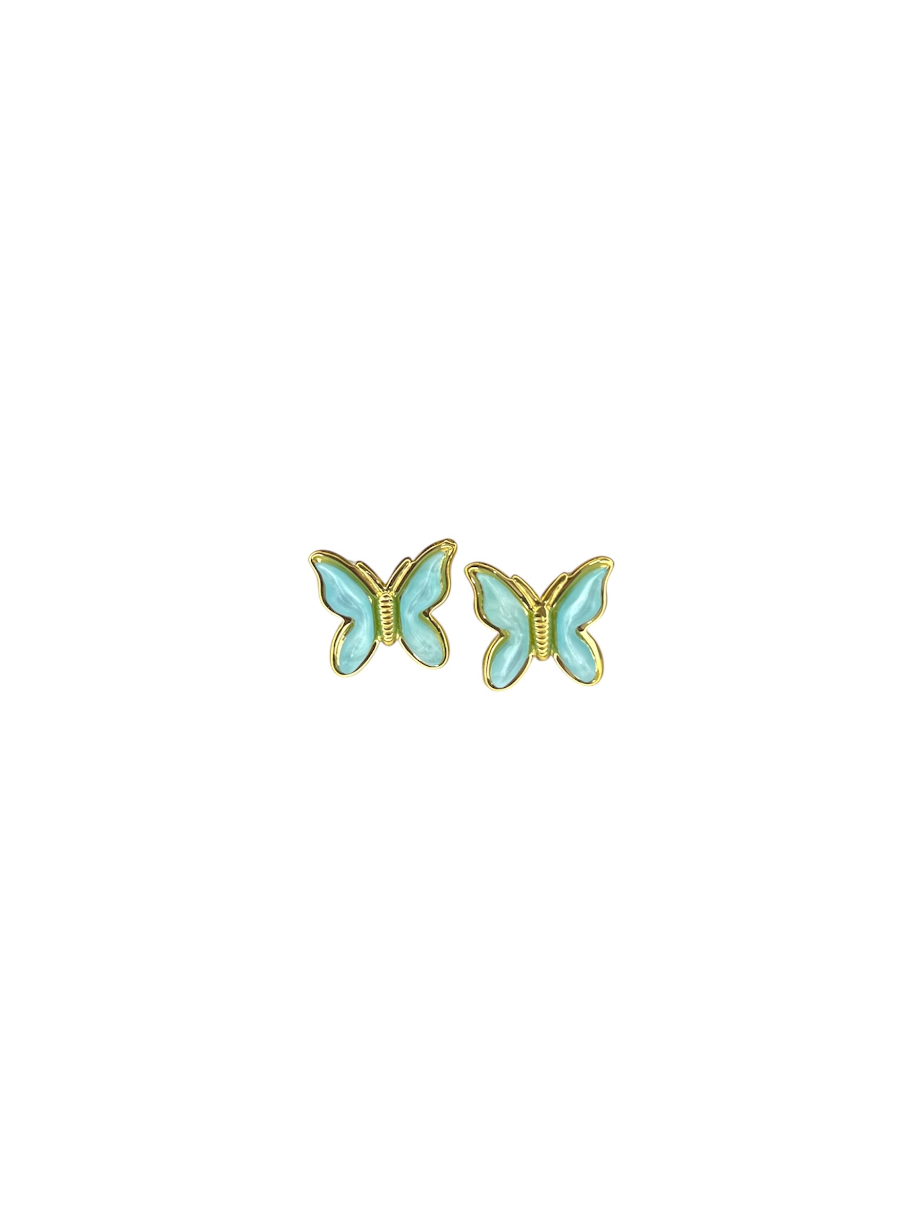 Αέρινα και λαμπερά σκουλαρίκια σε σχήμα πεταλούδας, σε αποχρώσεις τιρκουάζ. Προσθέτουν φρεσκάδα και καλοκαιρινή λάμψη σε κάθε σας εμφάνιση.