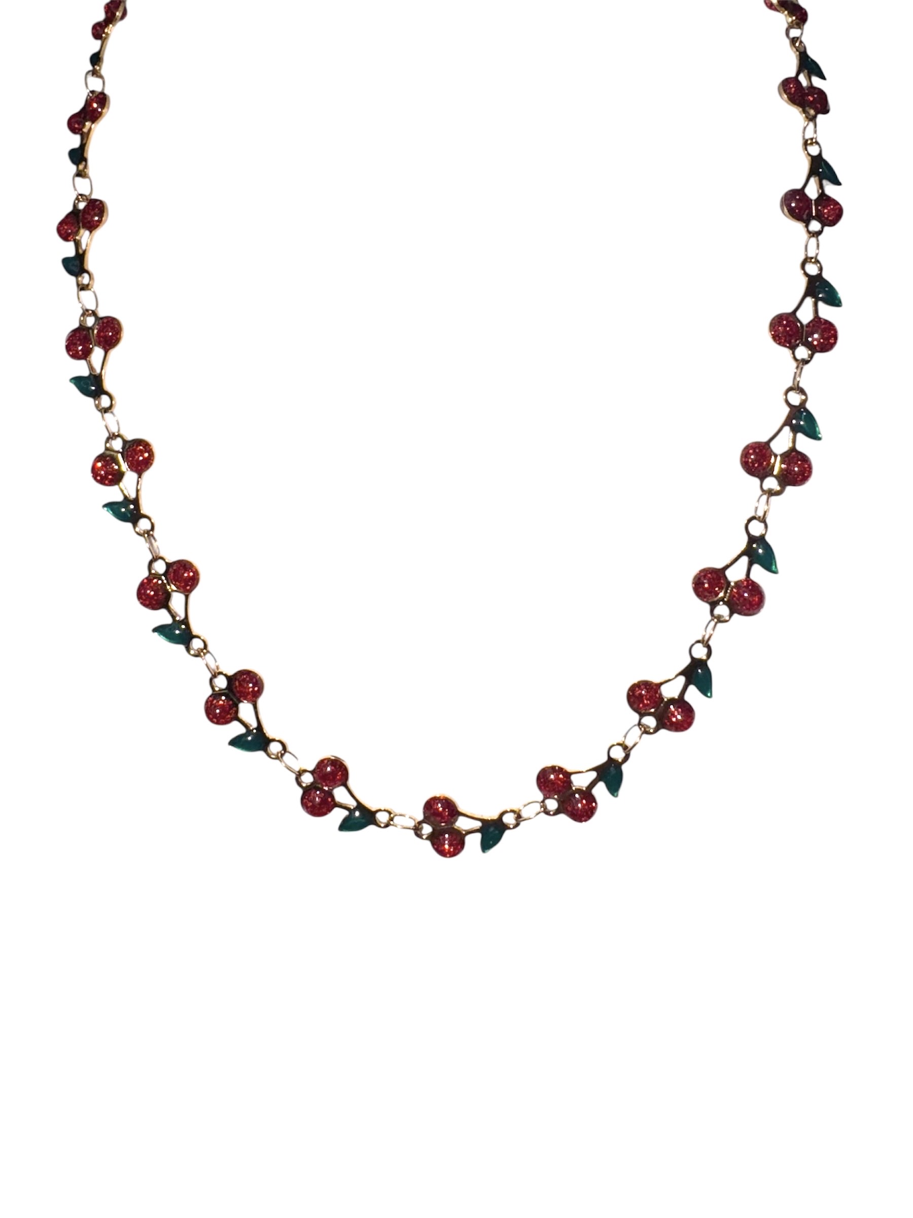 Προσθέστε μια δόση γλυκύτητας και ρομαντισμού στις εμφανίσεις σας με το Chérie, ένα κομψό κολιέ σε χρυσό χρώμα στολισμένο με μικρά κερασάκια σε όλο του το μήκος.
