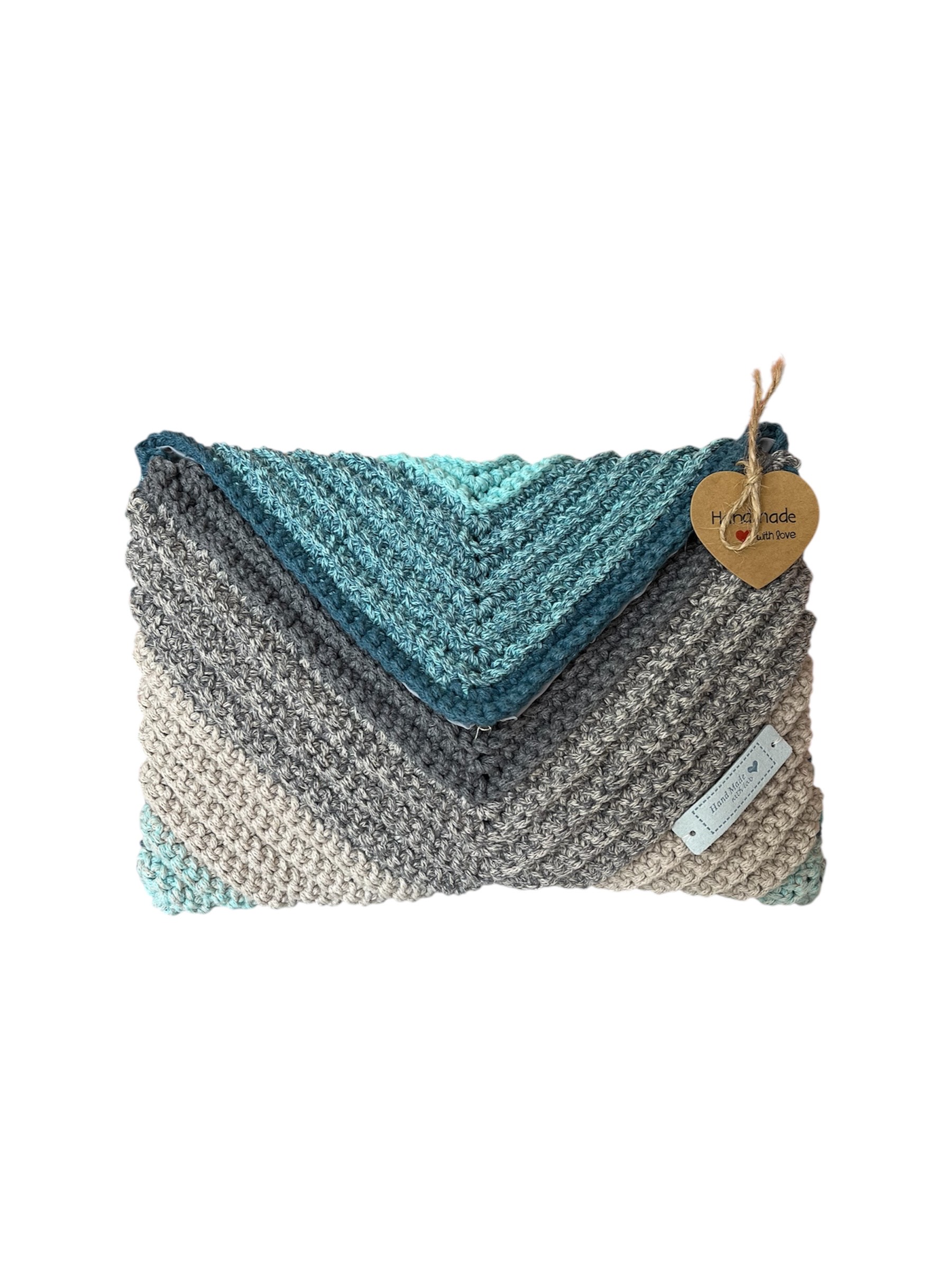 Χειροποίητη πλεκτή τσάντα-φάκελος με εσωτερική φόδρα, διαστάσεων περίπου 20×28 εκ. Ιδανική για ξεχωριστές εμφανίσεις με στυλ και φινέτσα.