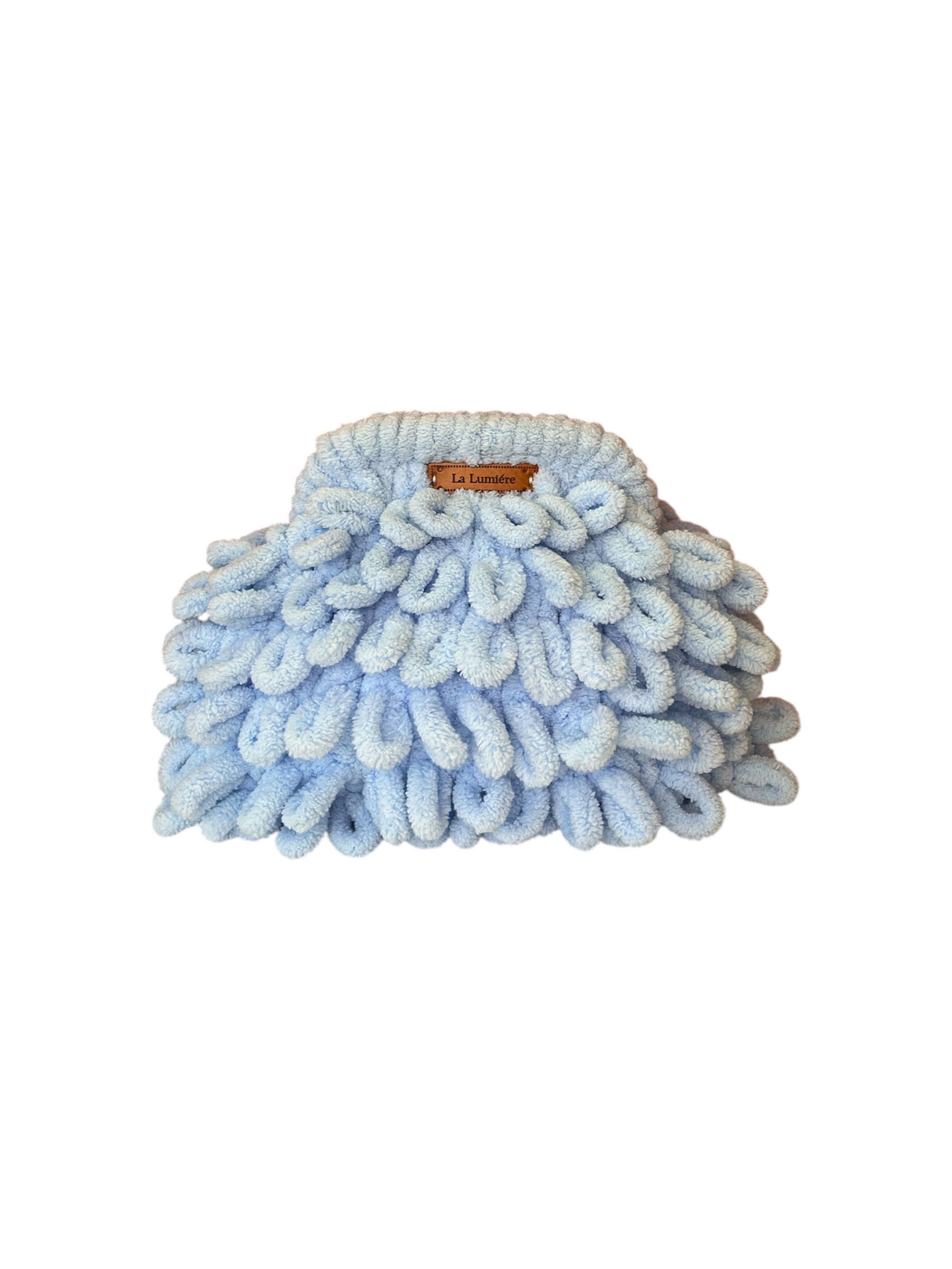 Χειροποίητη τσάντα χειρός Puffy από απαλό νήμα puffy, με κρυφό κούμπωμα clutch και εσωτερική φόδρα. Διαθέσιμη σε μεγάλη ποικιλία χρωμάτων. Διαστάσεις: 20×25 εκ.