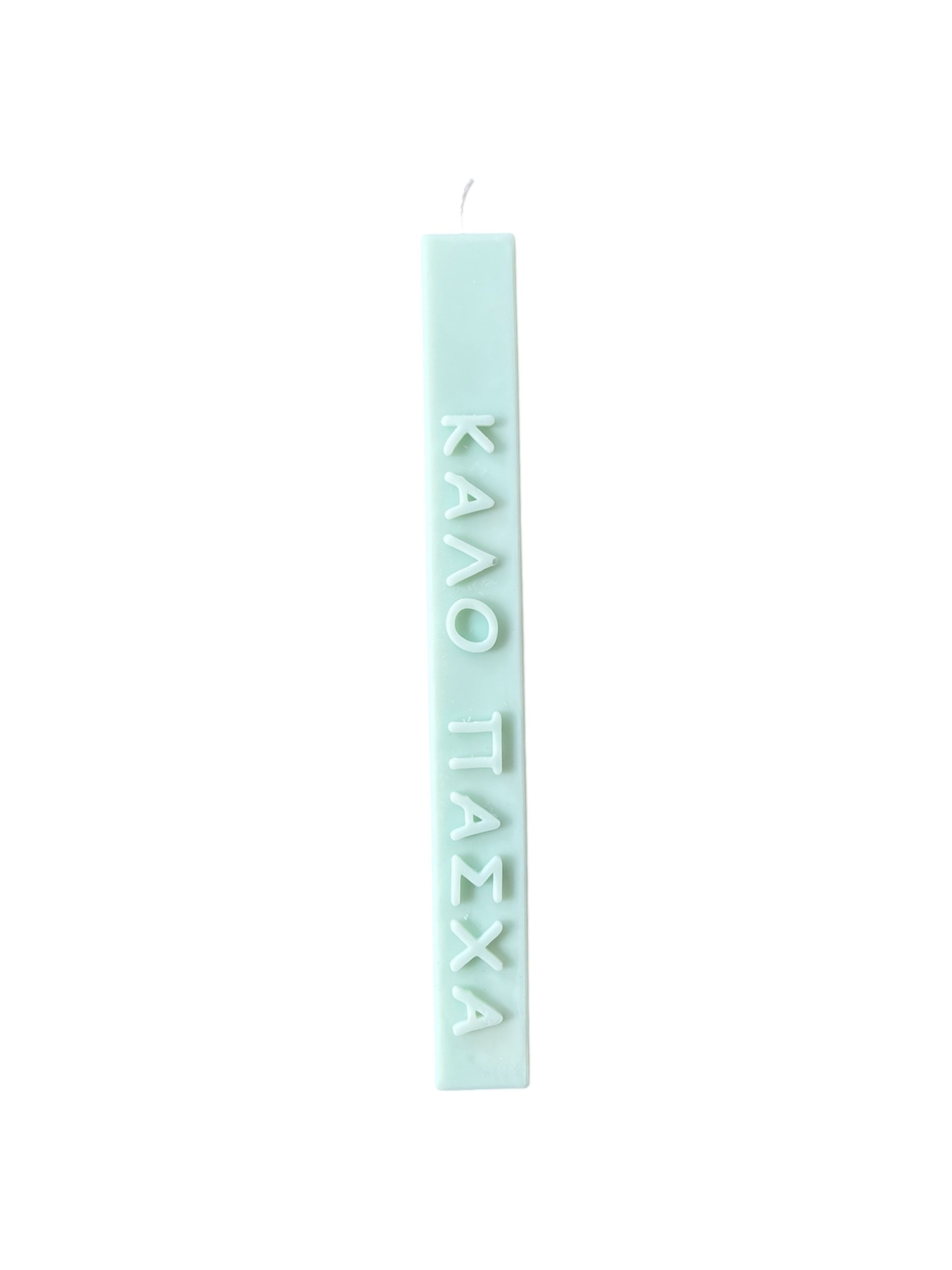 Χειροποίητη αρωματική λαμπάδα που σχηματίζει τη φράση «Καλό Πάσχα», κατασκευασμένη από φυτικό κερί σόγιας. Έχει ύψος 22 εκ. και διατίθεται σε ροζ, λευκό, γαλάζιο και πράσινο. Μια ξεχωριστή και γιορτινή επιλογή για την Ανάσταση ή για ένα ιδιαίτερο πασχαλινό δώρο.