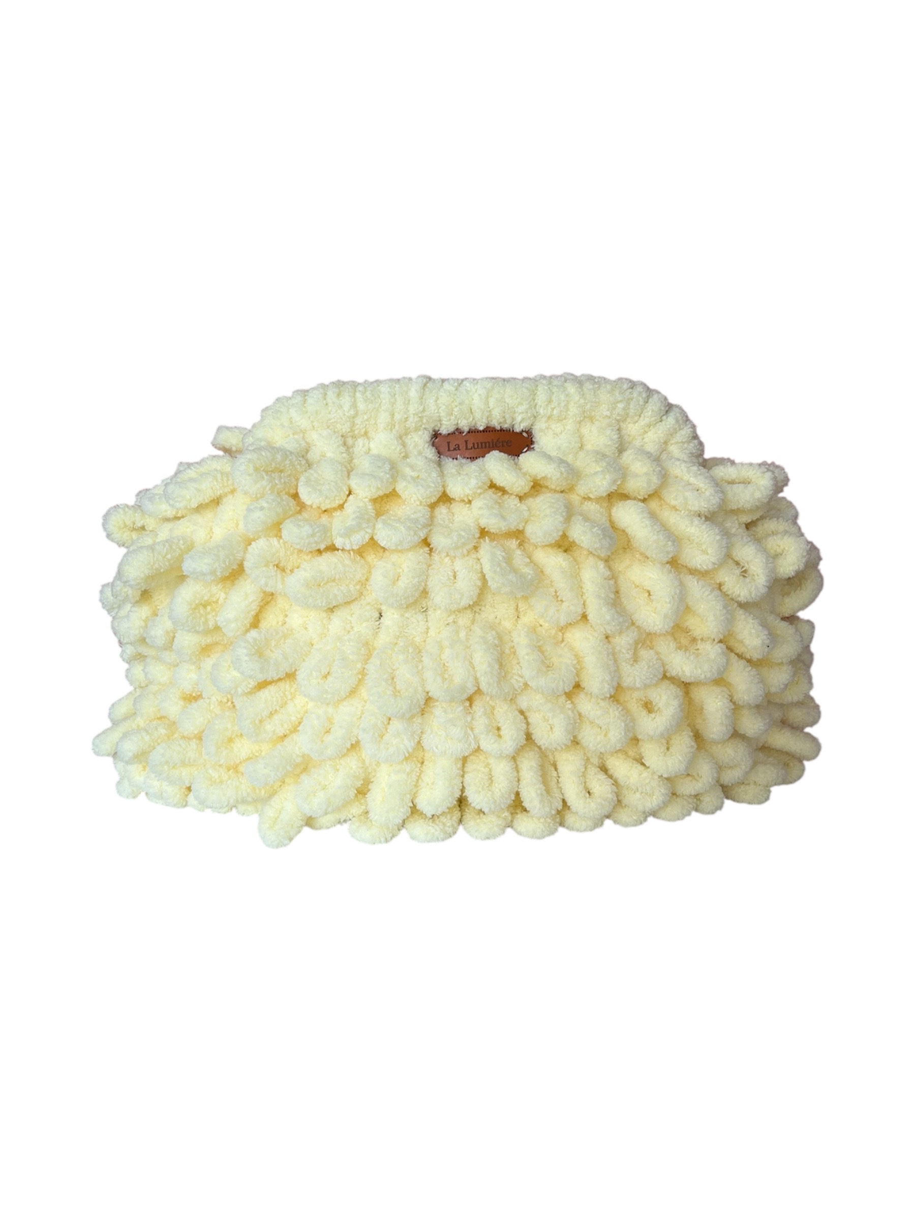 Χειροποίητη τσάντα χειρός Puffy από απαλό νήμα puffy, με κρυφό κούμπωμα clutch και εσωτερική φόδρα. Διαθέσιμη σε μεγάλη ποικιλία χρωμάτων. Διαστάσεις: 25×30 εκ.