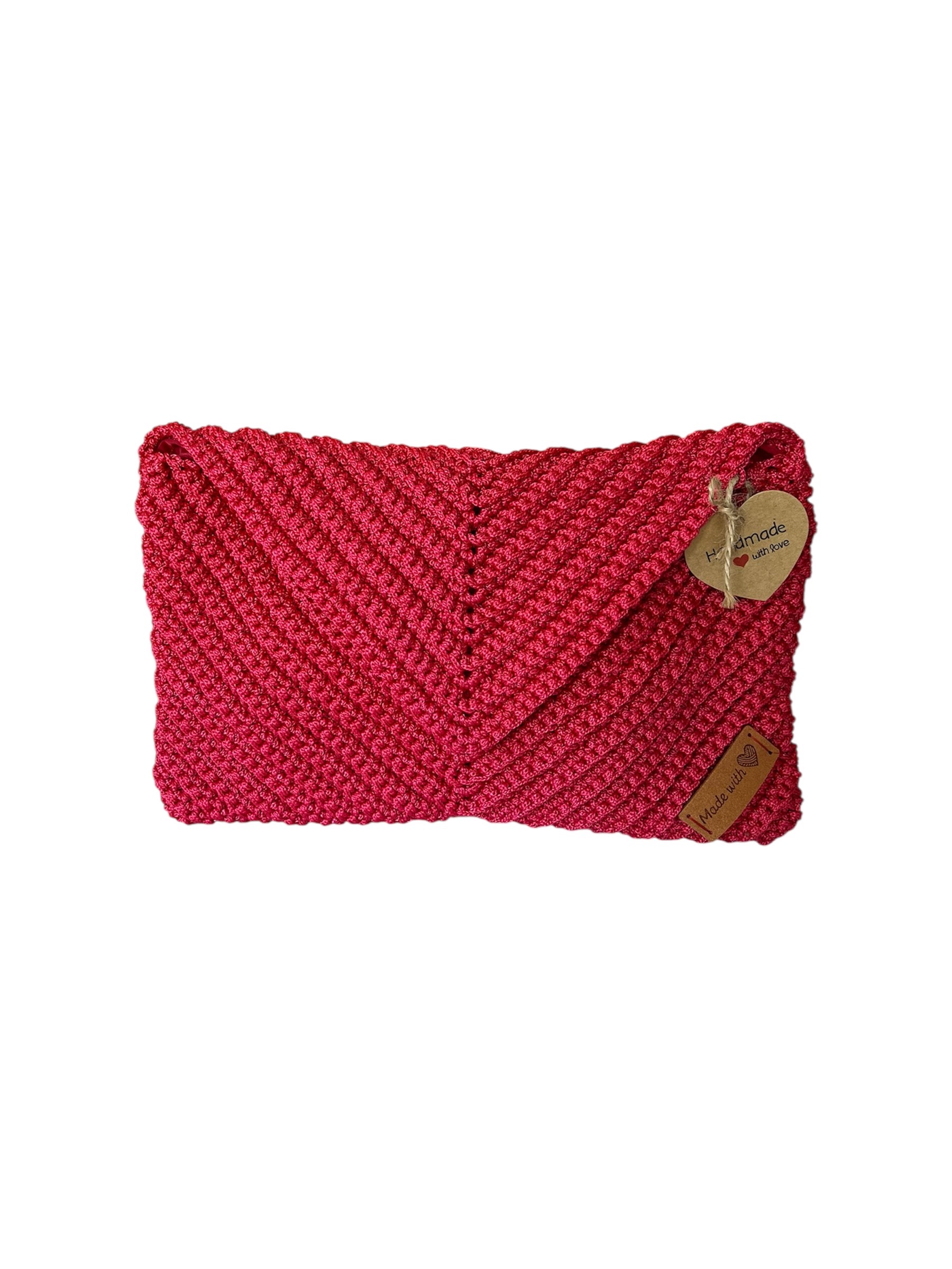 Χειροποίητη πλεκτή τσάντα-φάκελος με εσωτερική φόδρα, διαστάσεων περίπου 18×28 εκ. Ιδανική για ξεχωριστές εμφανίσεις με στυλ και φινέτσα.