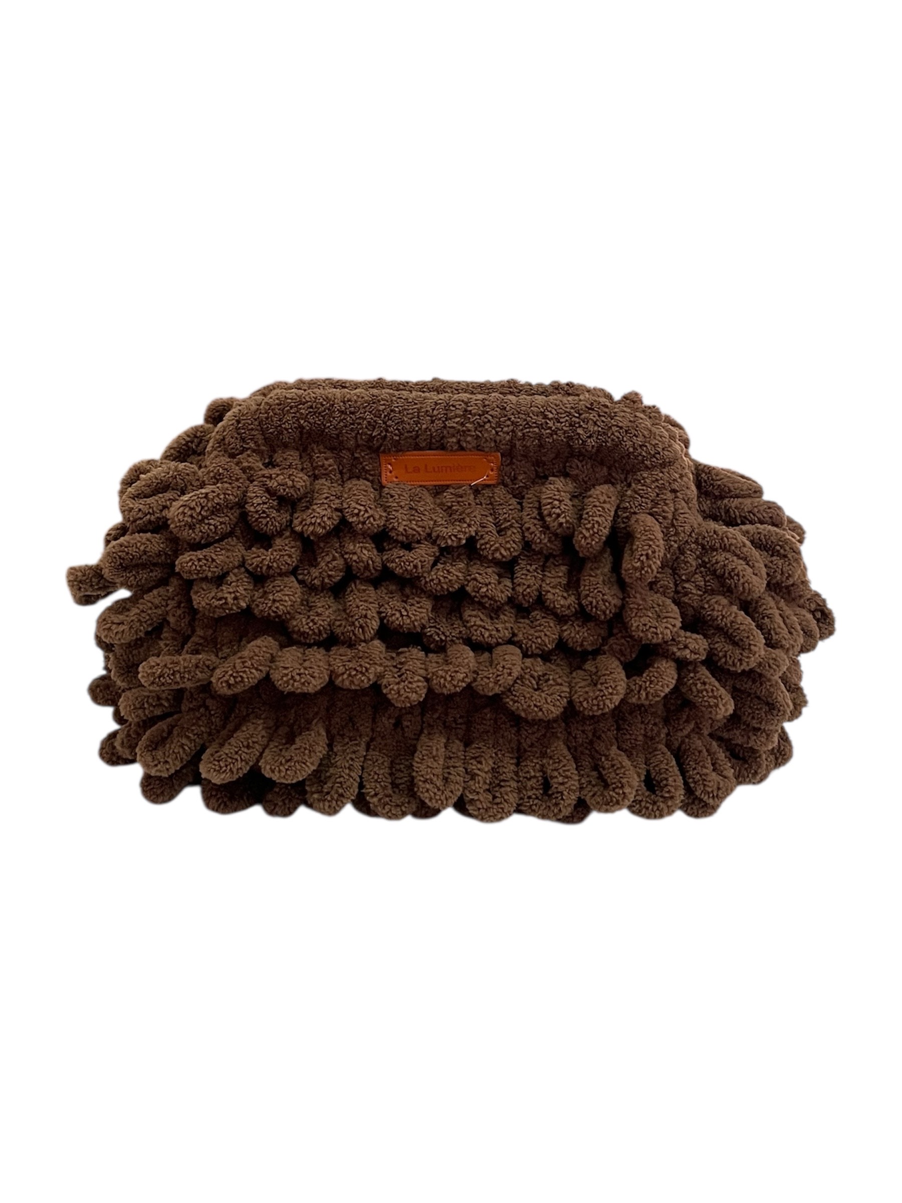 Χειροποίητη τσάντα χειρός Puffy από απαλό νήμα puffy, με κρυφό κούμπωμα clutch και εσωτερική φόδρα. Διαθέσιμη σε μεγάλη ποικιλία χρωμάτων. Διαστάσεις: 25×30 εκ.